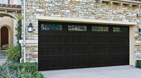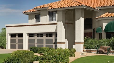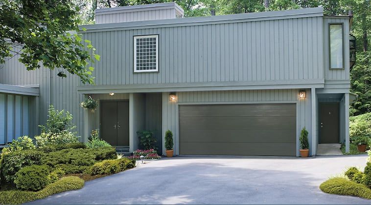 The printed horizontal plank design on a ribbed section creates depth, texture and subtle dimension. A perfect complement to modern, mid-century modern, and traditional architectural styles. Features a multi-tone, digitally printed woodgrain surface with a more realistic wood look. Available with either traditional or Mosaic Window placement.